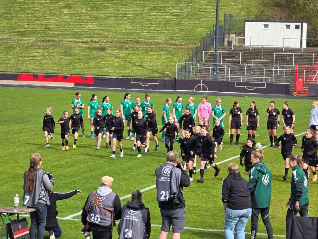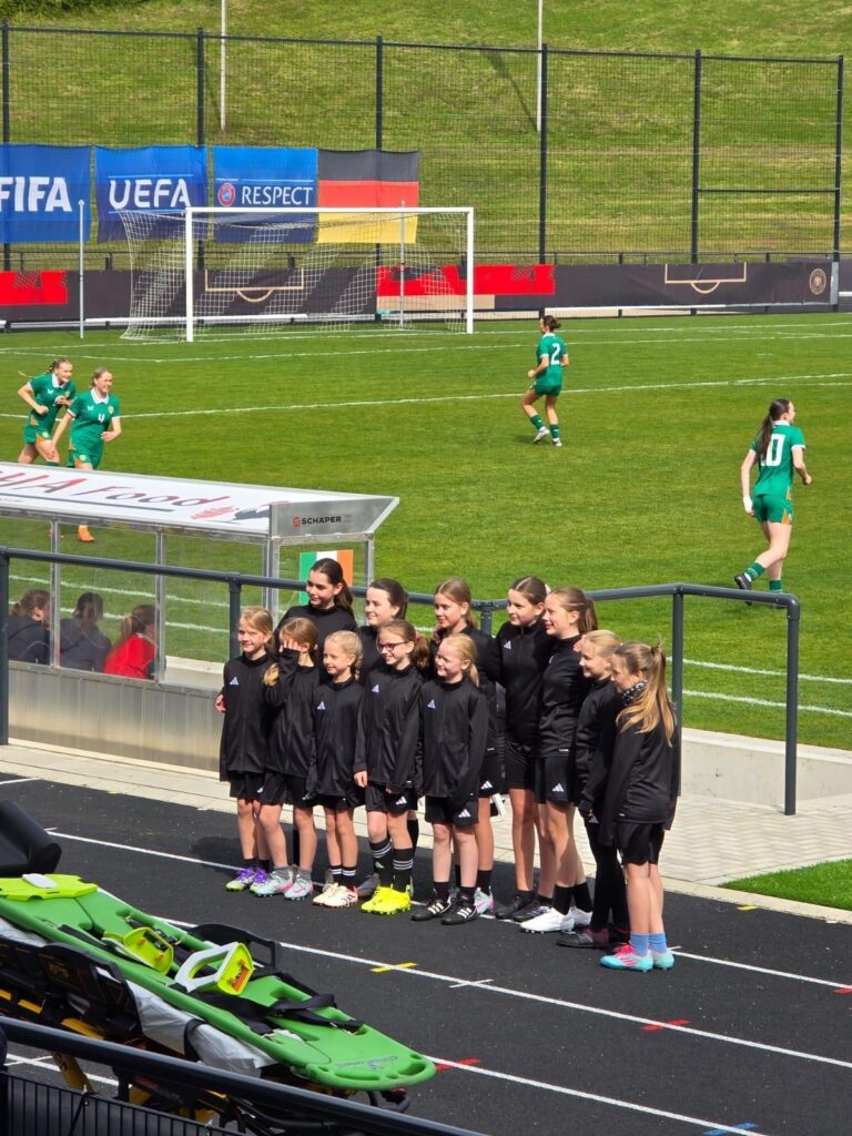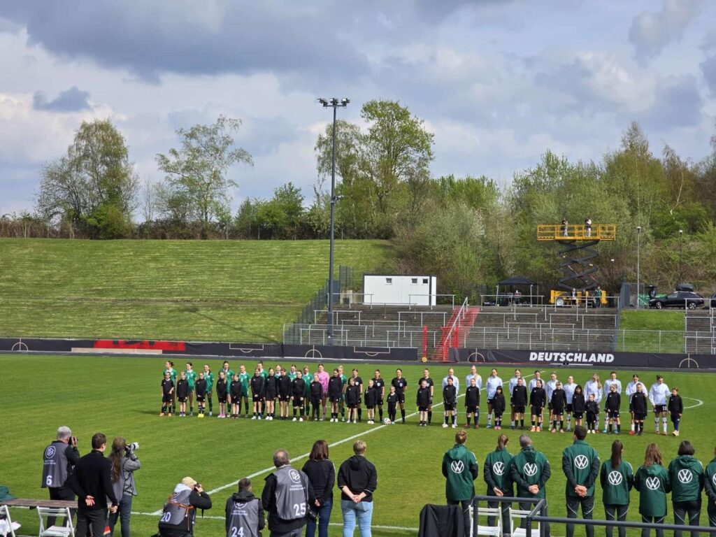 Auf Einladung durch den ETB nach Vermittlung von Oliver Kuhn durften unsere U13-Juniorinnen heute beim Länderspiel der deutschen U19-Juniorinnen gegen Irland im Stadion am Uhlenkrug als Einlaufkinder teilnehmen.